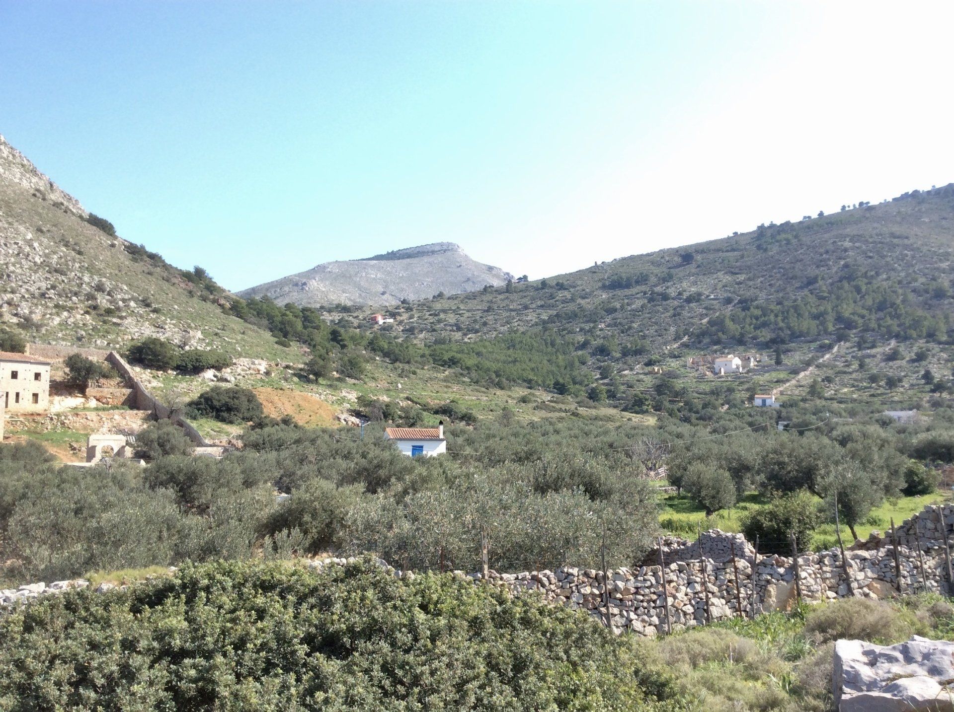 Palamida nestles in a fairly large valley with a 'flat bottom' protected on all sides by gentle rocky hillsides. Palamida is the 'gateway' to the much greener west end of Hydra Island.
