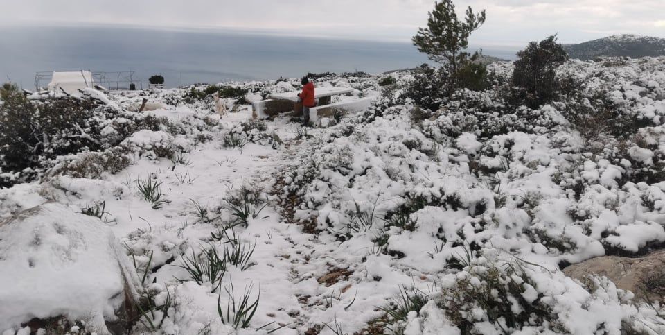 Snow on Hydra is rare, but this year we've had more than I've experienced in twenty years, and if you don't mind hiking up the hills, enough has settled to enable a respectable snowball fight.