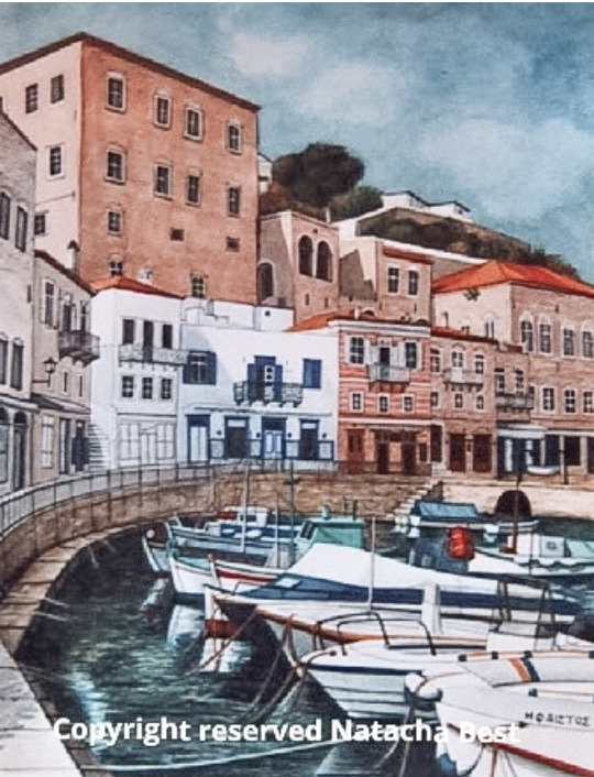 Natacha Best is a well established artist who splits her time between Paris, France and Hydra Island Greece. Natacha is a water colourist who presents intensely detailed scenes of Hydra that are instantly recognisable by Hydra fans, making her work extremely accessible and popular.