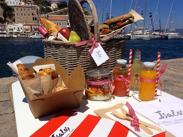 And of course, they eat and relax at the Isalos which is why you will find so many healthy and fitness-oriented items on the menu inspired by Hydra's sports men and women.