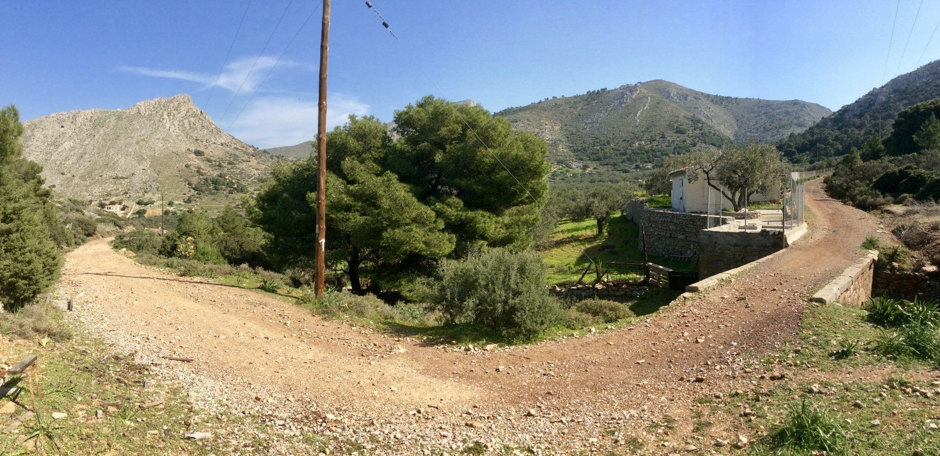 When you reach the back of the valley where the road turns sharp left over a small bridge you will start to head up to Episkopi. It's another hour of walking inland along the same level road (often shaded by pine trees) to reach Episkopi. So if you've had enough walking for the day, stop here and trace your steps back to Hydra town along the same coast road.
