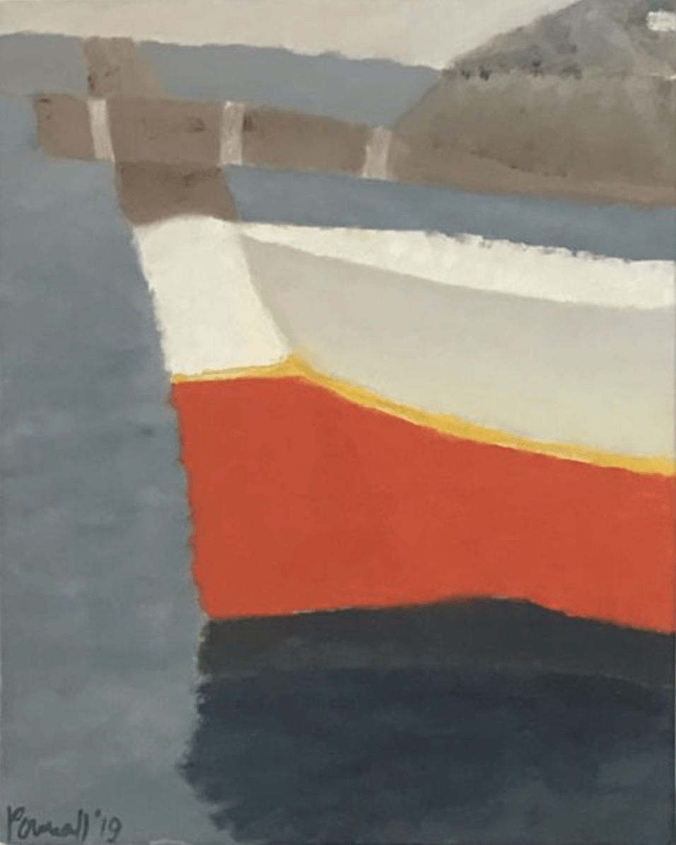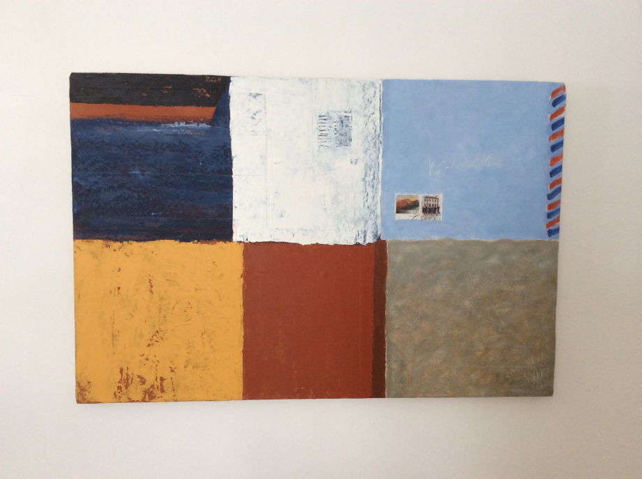 Bill communicates in a thoughtful and considered way. Even when contacting friends he still prefers to eschew technology, instead hand-writing and posting airmail letters and notes. His objection to ill-considered correspondence, in his view the result of too easy internet access causing people to rush out hasty messages, is reflected in his paintings many of which feature stamps and the distinctive airmail symbol. Even the boats he paints indicate not just what can be seen now but hark back to his earlier experiences and communicate his connection with where he has come from and the life voyages he and his admirers still can anticipate.